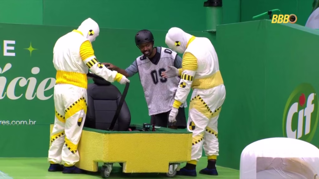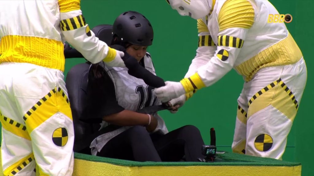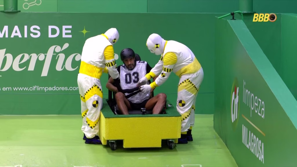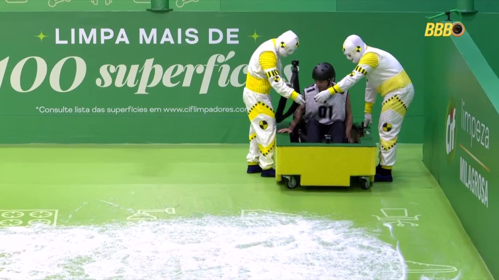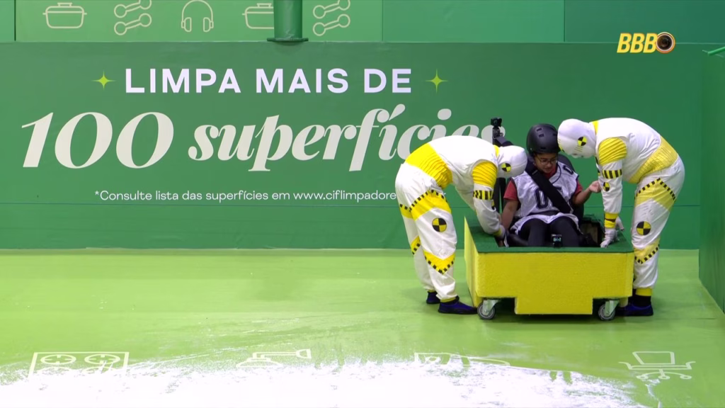 A Prova do Anjo começou por volta das 14h30 e pegou os brothers de surpresa. Tadeu Schmidt anunciou logo de cara que o Anjo desta semana seria autoimune, o que mudou completamente a dinâmica de risco de vários participantes. A prova, que simulava um boliche humano gigante com pista ensaboada, exigia que eles entrassem em um carrinho de esponja e derrubassem pinos.