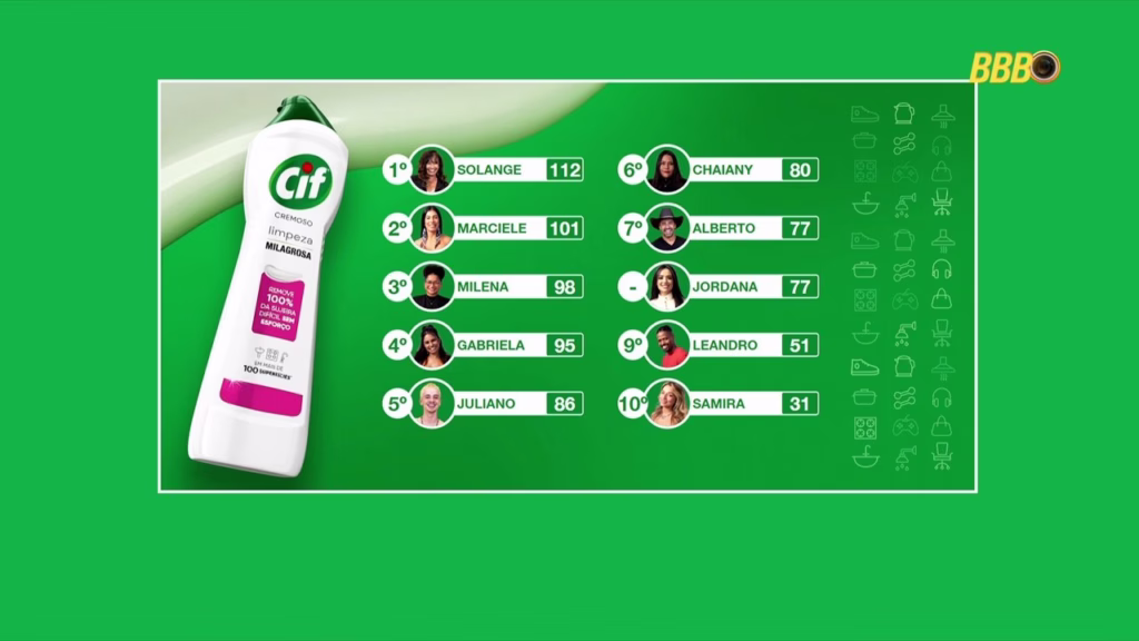 A troca de ofensas entrou em looping, com Juliano chamando Jordana de falsa, prepotente e soberba. Em contrapartida, Jordana diminuiu a trajetória dele no reality, chamando-o de “panguão” e afirmando que ele resolveu aparecer no jogo apenas depois de 80 dias de férias. Milena entrou na briga para defender Juliano, e Jordana sobrou até para ela, dizendo que continuaria se admirando no espelho porque é linda.