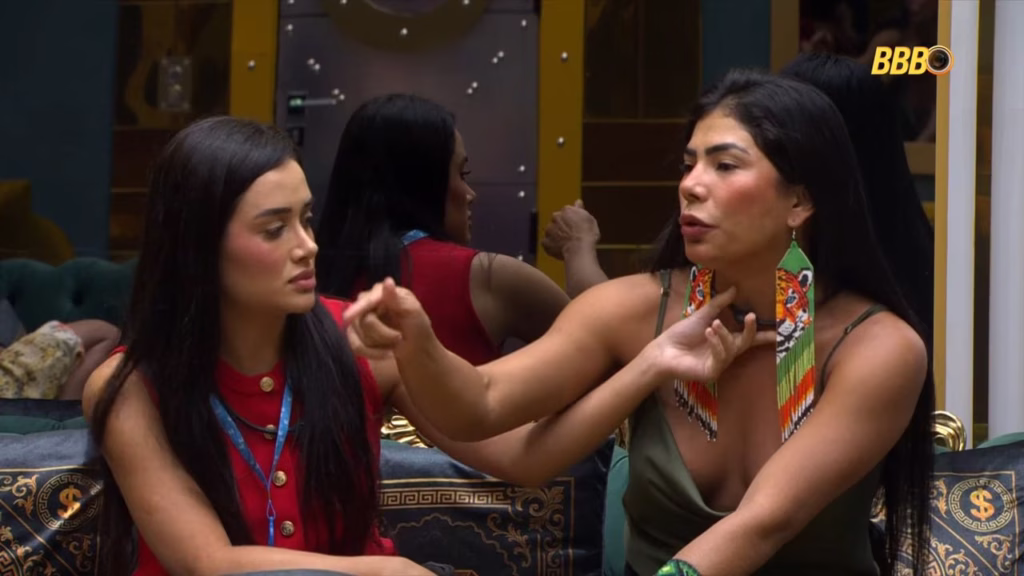 O embate tenso ganhou contornos ainda mais dramáticos e imprevisíveis com a entrada abrupta de Gabriela na roda de discussão geral. Tentando blindar sua velha aliada a qualquer custo, Gabriela acusou Ana Paula e Milena de agirem como verdadeiras ditadoras implacáveis. A confusão generalizada se instaurou quando Milena rebateu Gabriela, afirmando que não estava falando com ela e perguntando se seu nome era Chaiany. Completamente fora de si, Gabriela disparou xingamentos pesados, mandando as duas para aquele lugar e exigindo respeito aos sentimentos alheios.